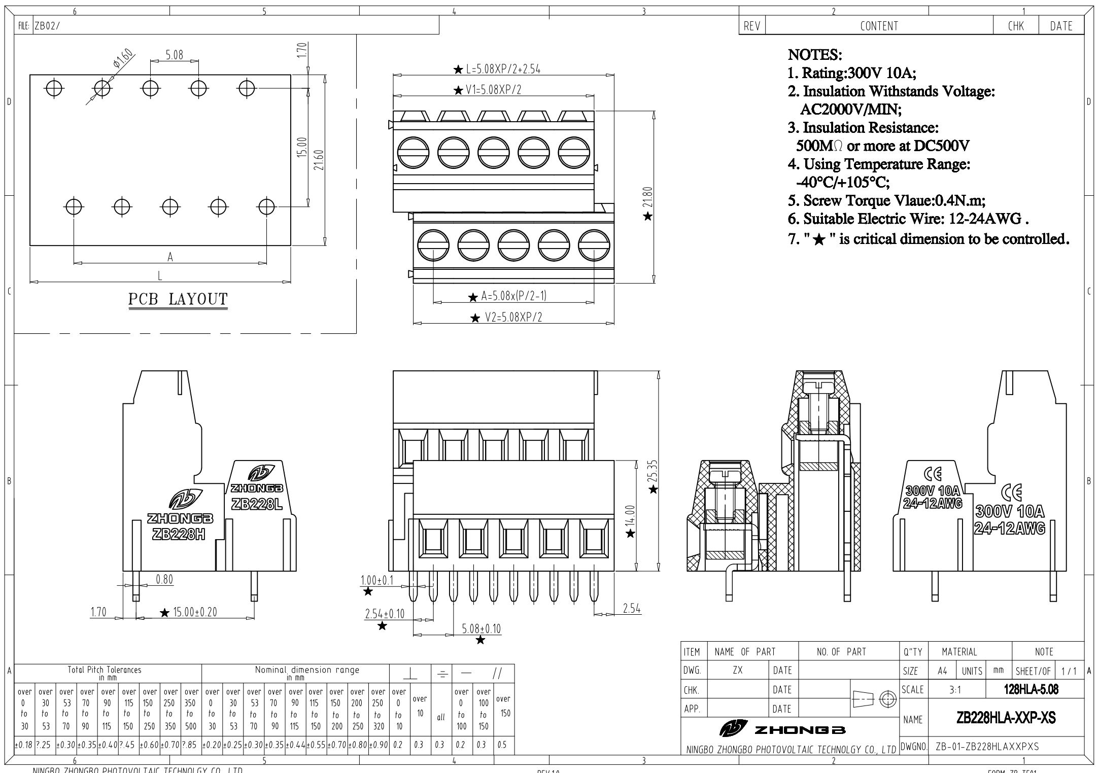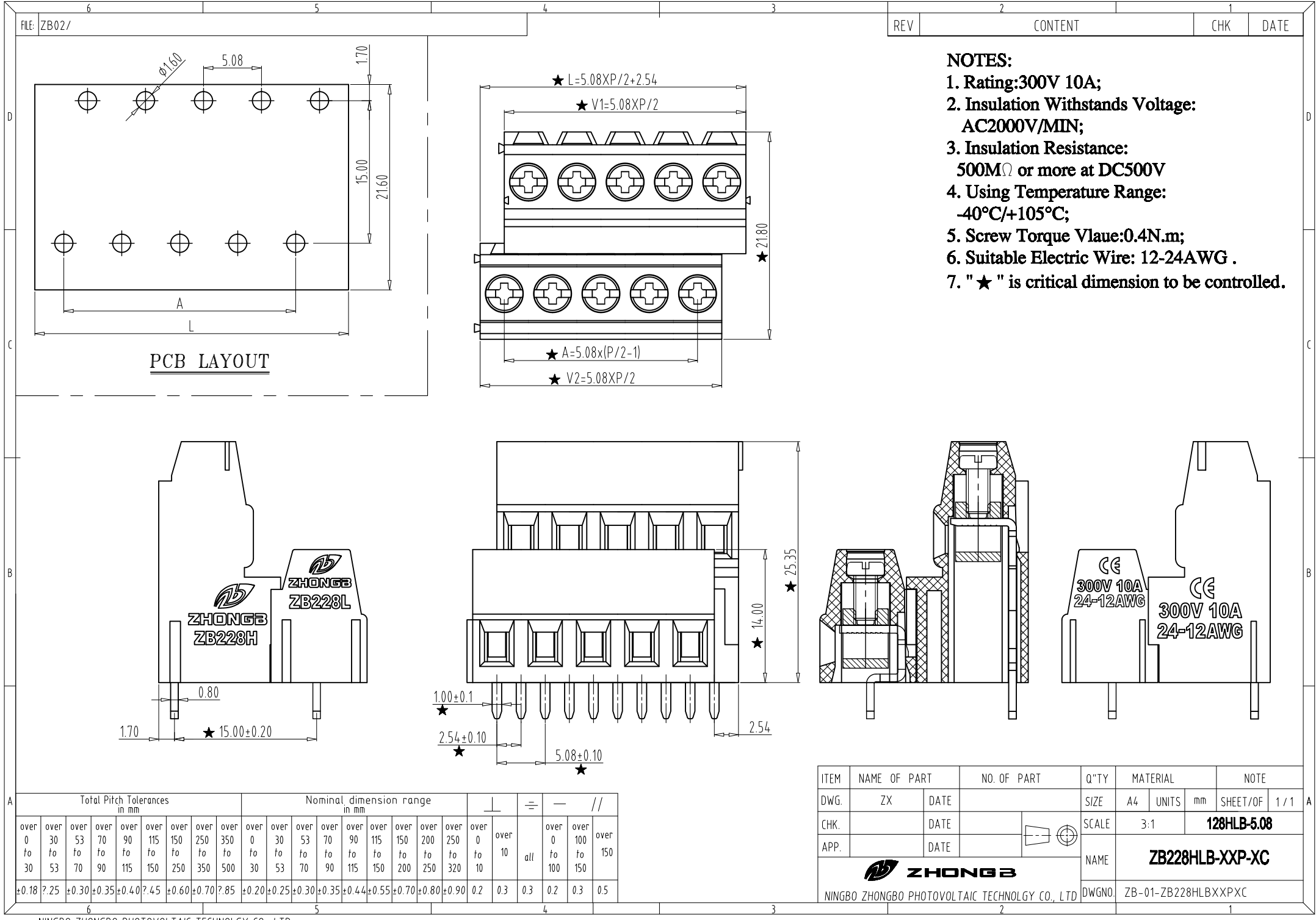 Plastic: PA66 Pin (1): H2 Brass, Copper-Tin Plated Pin (2): Iron, Copper-Tin Plated Screw: C1018 Steel, Blue-White Zinc Plated Cage Square (1): C3604 Copper, Nickel Plated. Cage Square (2): Iron, Blue-White Zinc Plated |